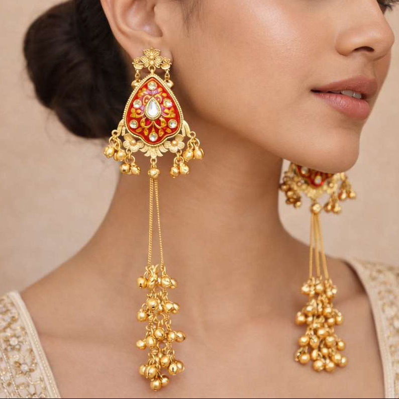 RUPA KASHMIRI EARRINGS in Brass (Red)