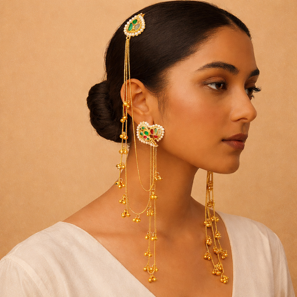 FARHANA KASHMIRI EARRINGS in Brass with Kanchain (MULTI)
