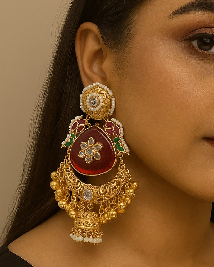 TRISHYAM KASHMIRI EARRINGS in Brass (Red)