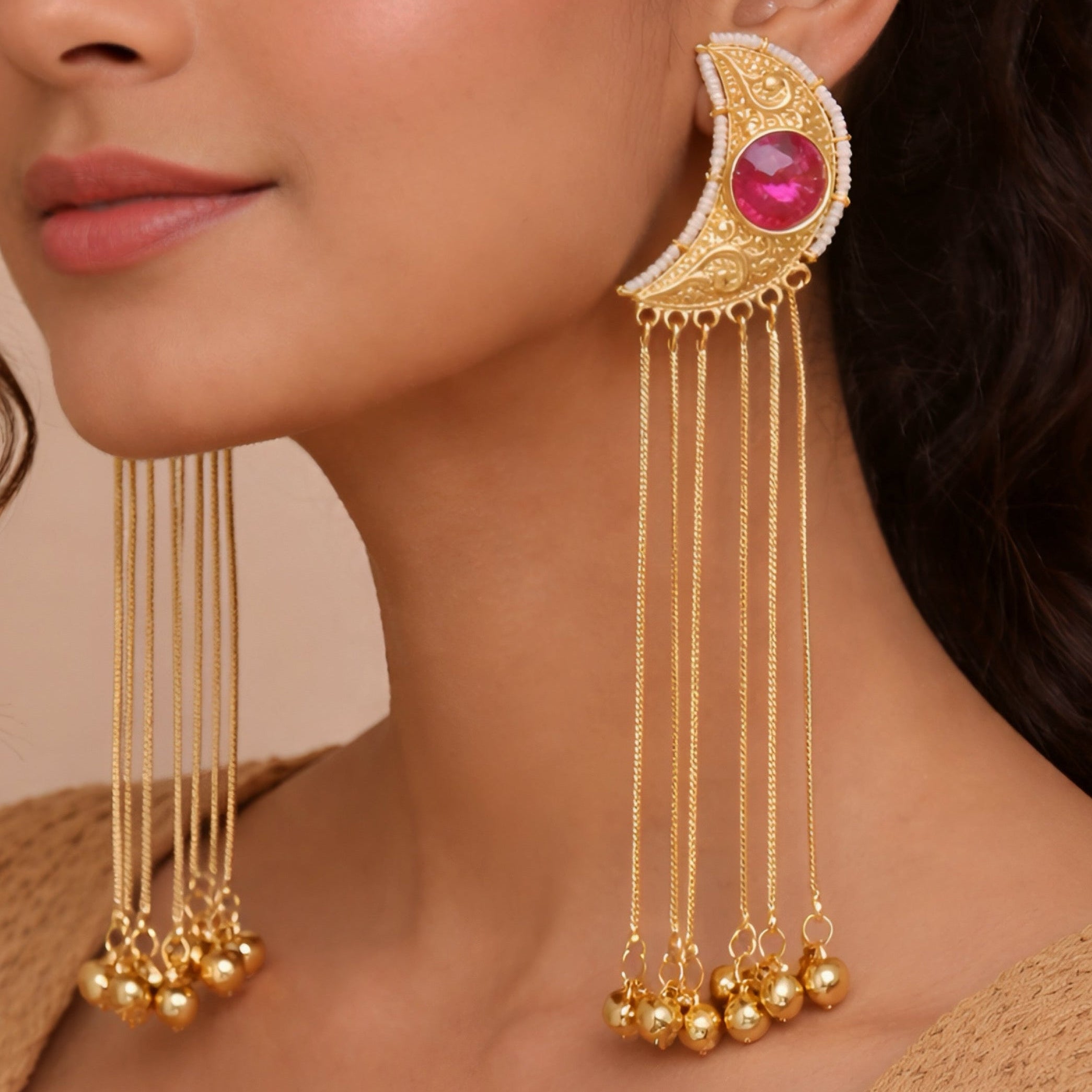 MOUNI KASHMIRI EARRINGS (Rani pink)