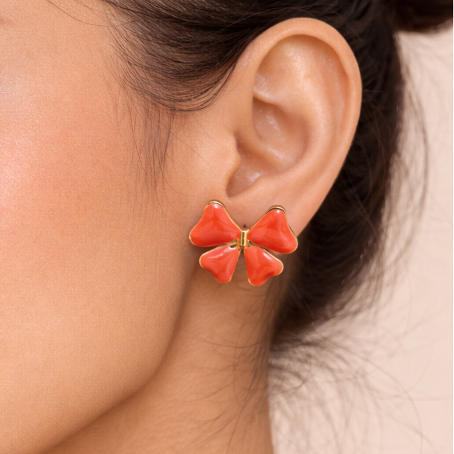 RUMBLE BOW EARRINGS (Coral Red)