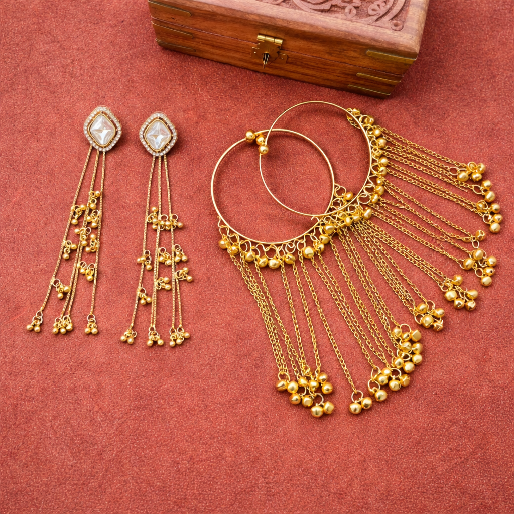 This combo contains 2 items : (1 Earring, 1 Ghungroo bangle (Pair))